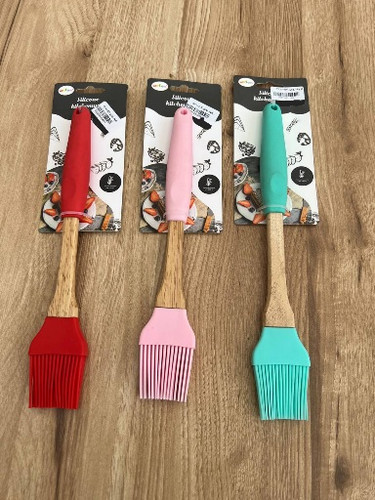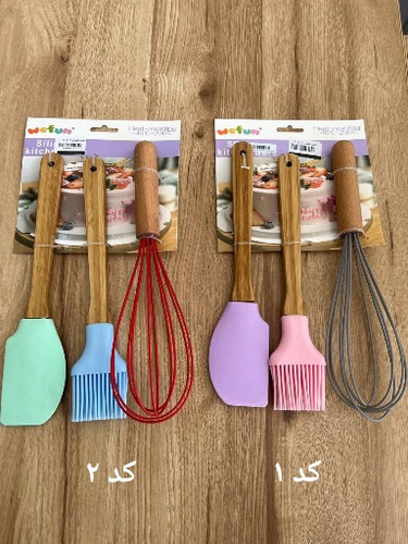 ست کفگیر ملاقه سه عددی سیلیکون نسوز دسته چوبی