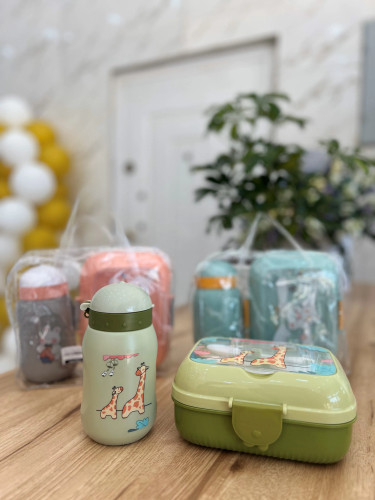 ظرف غذای کودک ۴ خانه طبقاتی به همراه قمقمه طرح دار فانتزی