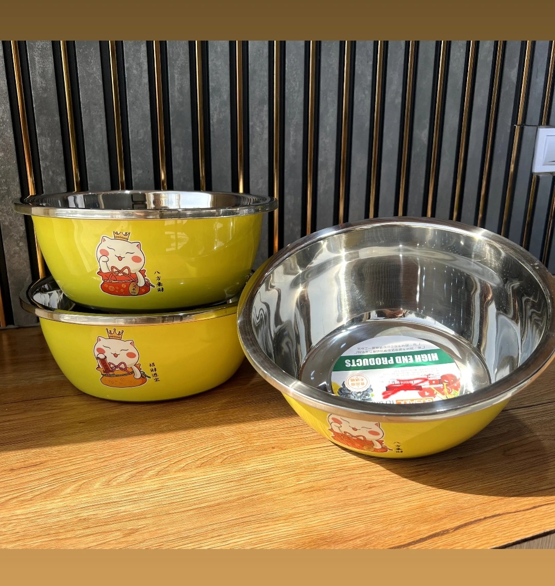کاسه استیل سایز 26 رنگ زرد طرح دار