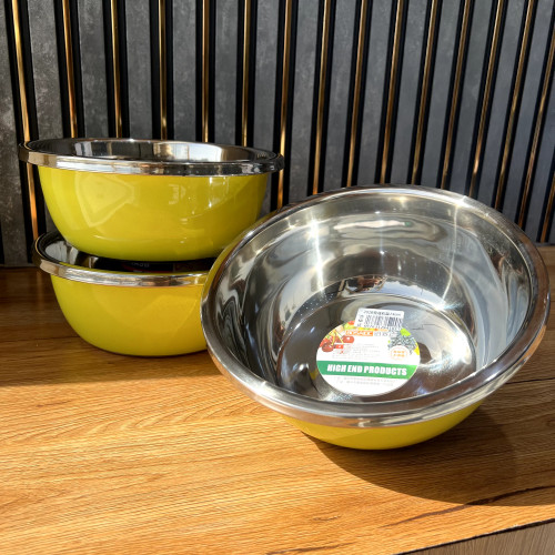 کاسه استیل زرد رنگ بدون طرح سایز ۲۴