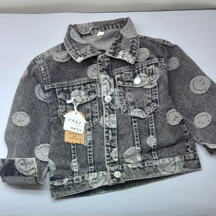 لباس بچگانه کت جین بچگانه وارداتی طرح لبخند رنگ ذغالی کیفیت درجه یک
