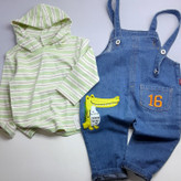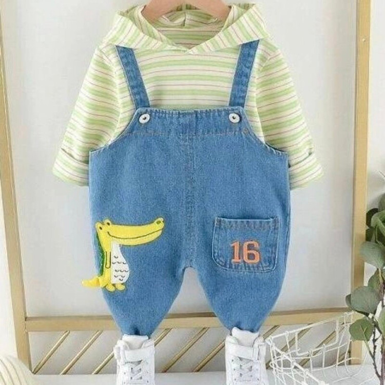 لباس بچگانه وارداتی ست بیلر و هودی مناسب دختر ووپسر رنگ هودی راه راه سبز و بیلر جین اورجینال