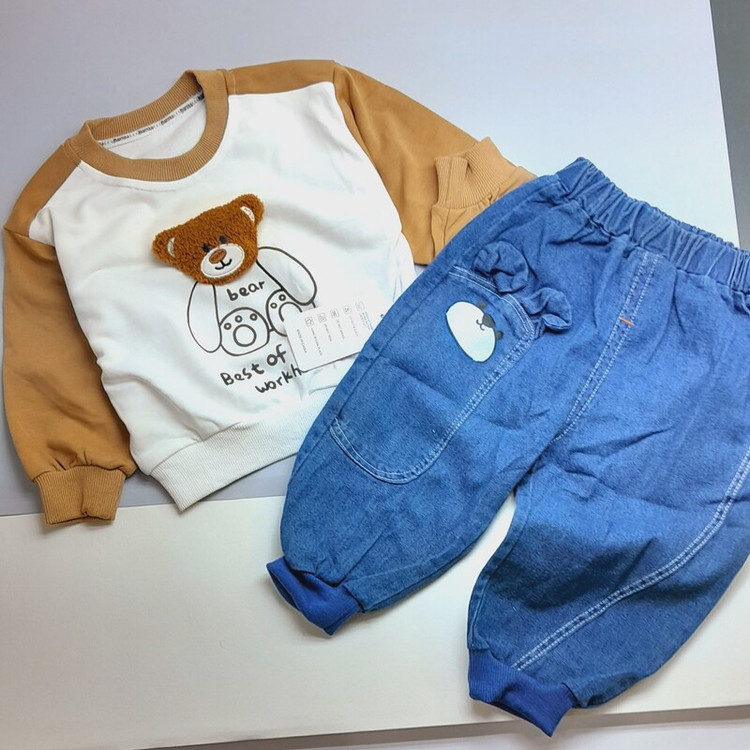 لباس بچگانه ست بلوز و شلوار تدی وارداتی. بلور دورس و شلوار جین