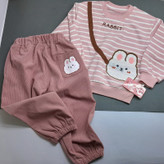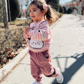 ست دو تیکه فوق العاده با کیفیت جنس بلوز دورس دو نخ شلوار مخمل کبریتی کمر شلوار کش تیکه دوزی روی بلوز کیفیت چاپ عالی مناسب 3 تا 5 سال قد آستین از یقه اندازه گرفتم