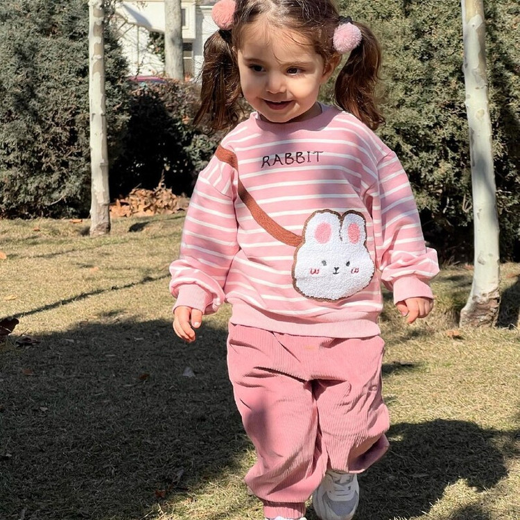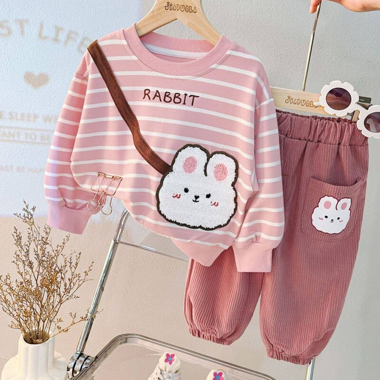 لباس وارداتی دخترانه ست بلوز و شلوارخرگوشی بلوز دورس و شلوار مخمل کبریتی
