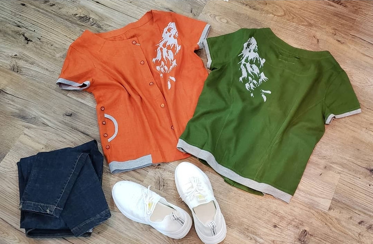 یقه دار رنگ سورمه ای و سبز