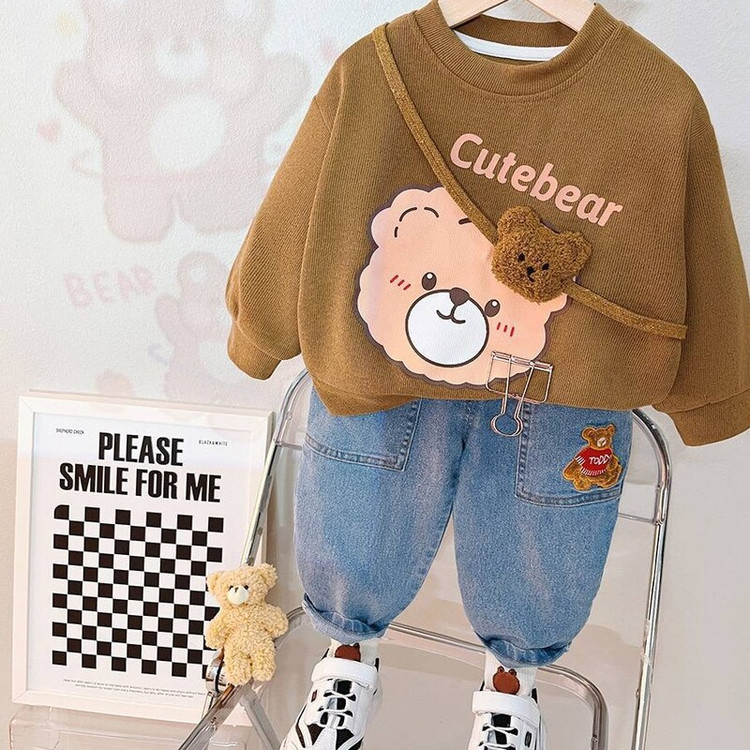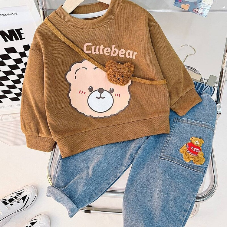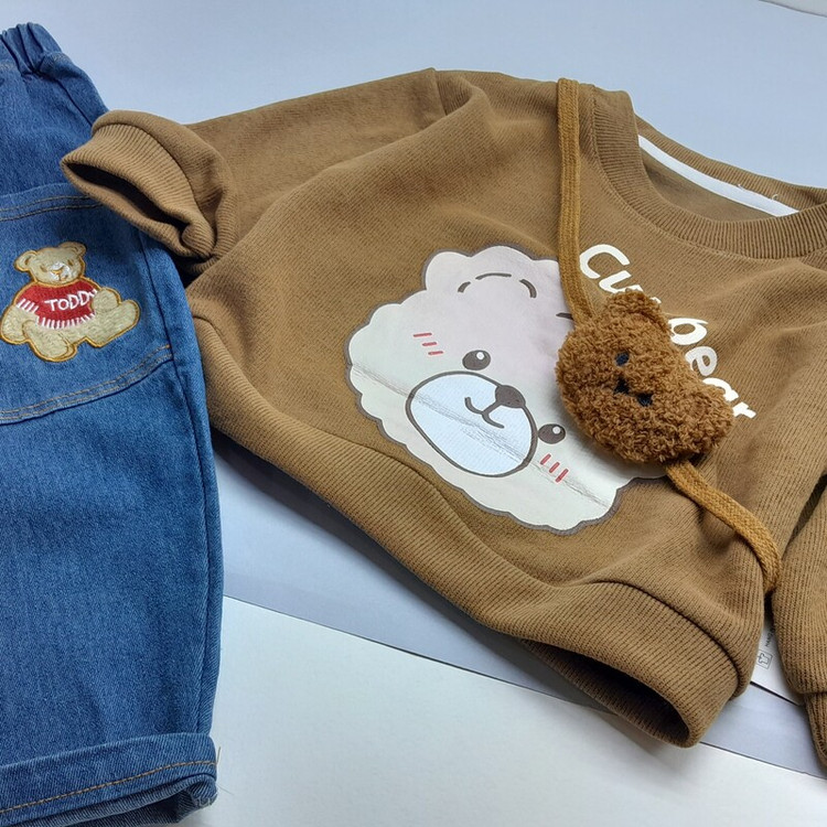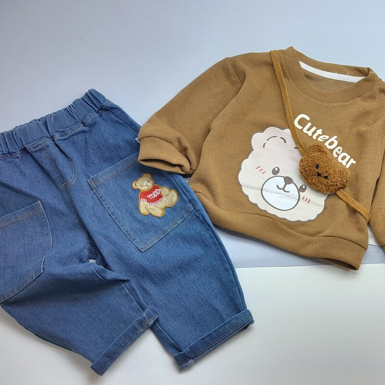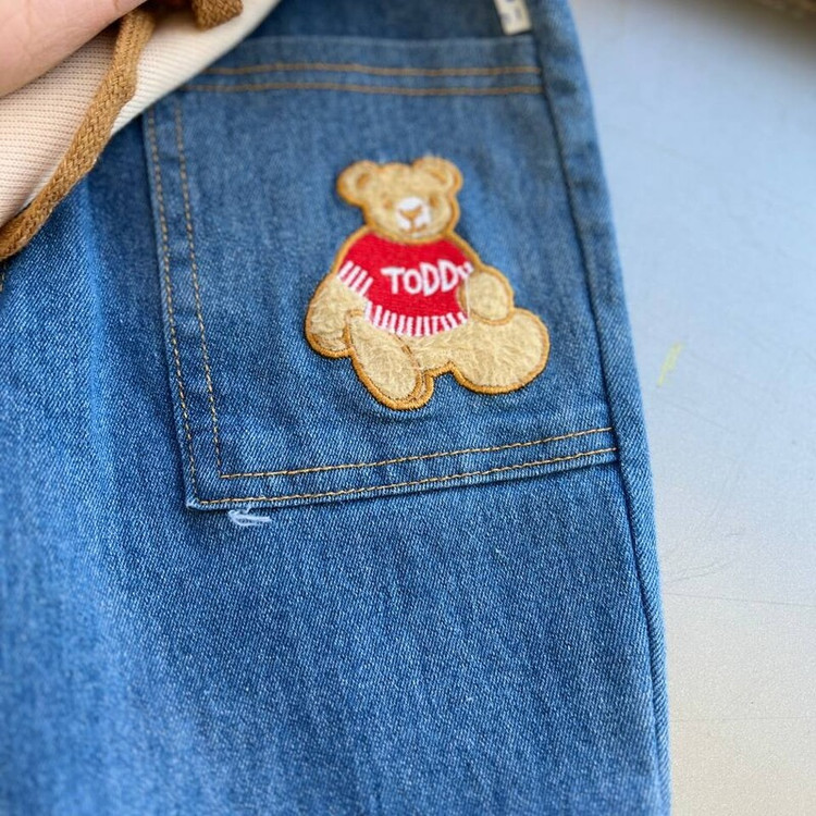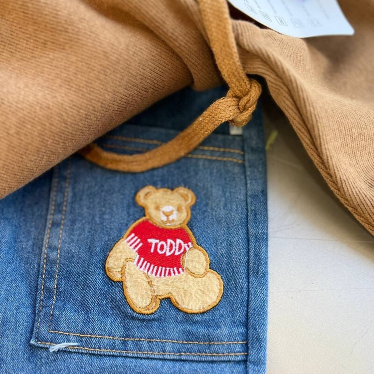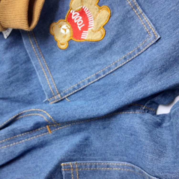 لباس بچگانه ست بلوز و شلوار کیف دار تدی وارداتی جنس درجه یک بلوز نخ کبریتی ریز و شلوار جین