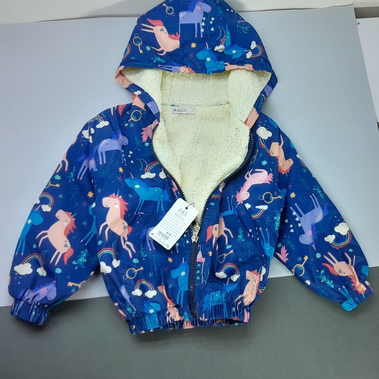 لباس دخترانه سویشرت دخترانه داخل پشمی طرح یونیکورن رنگ سورمه ای کیفیت عالی