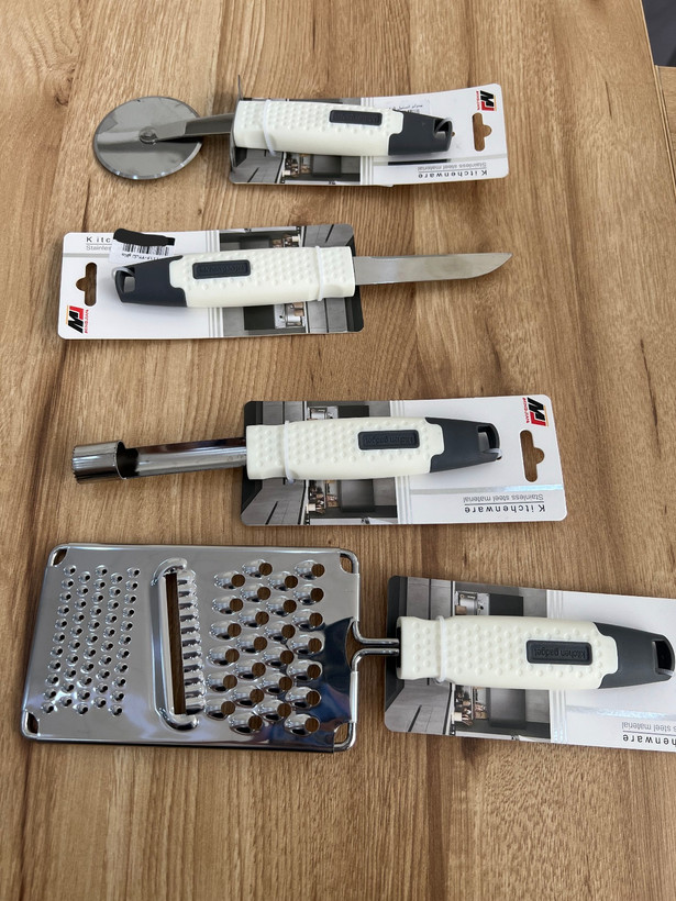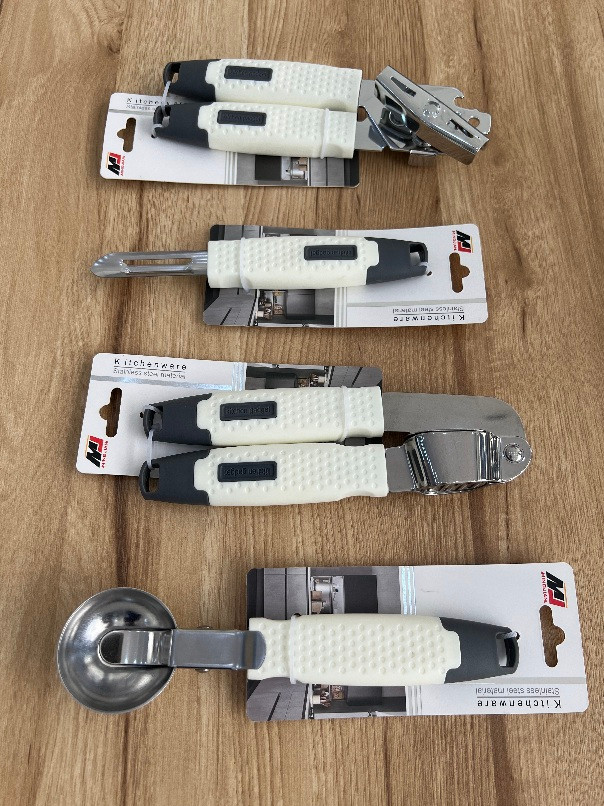 مجموعه ابزار آشپزخانه استیل دسته سفید طوسی
