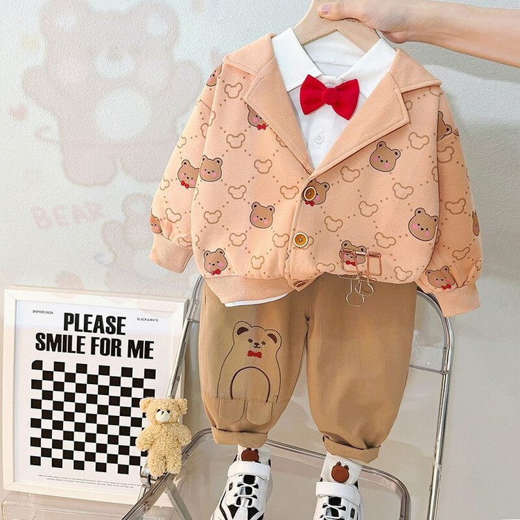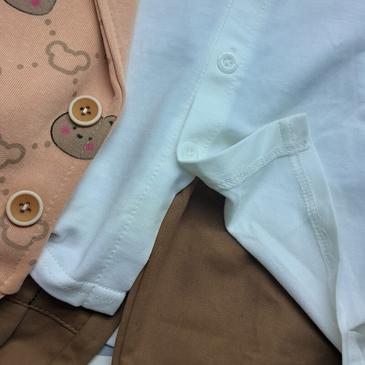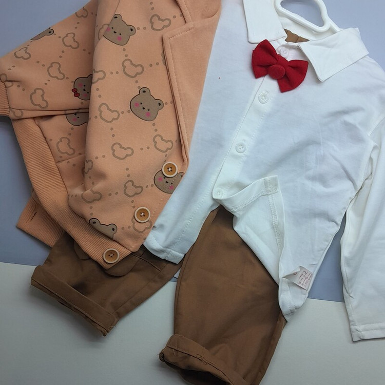 لباس بچگانه سه تیکه وارداتی همراه با پاپیون جنس بلوز نخ وپنبه شلوار کتان و کت نخ پنبه آستر کشی شده حتما سایزها رو چک