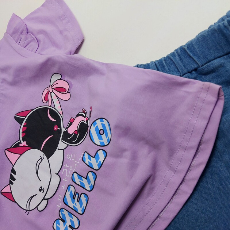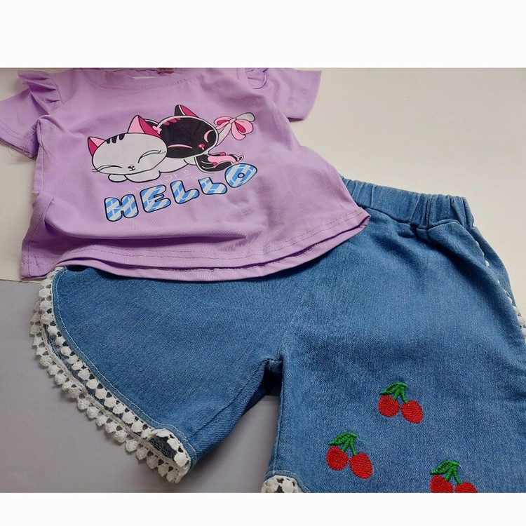 ست تیشرت شورتک HELLO جنس تیشرت نخ پنبه لطیف و کشی شلوارک جین با کیفیت گلدوزی شده 4 سایز مناسب 9 ماه تا 3/5یا 4 سال سایز s: قد تیشرت 35 سانت/پهنا تیشرت 25 / قد شورتک 27 سایز m: قد تیشرت 36/ پهنا تیشرت 26 / قد شورتک 29 سایز L: قد تیشرت 37/ پهنا تیشرت 28/ قد شورتک 30 سایز xl : قد تیشرت 38/ پهنا تیشرت 30 / قد شورتک 32