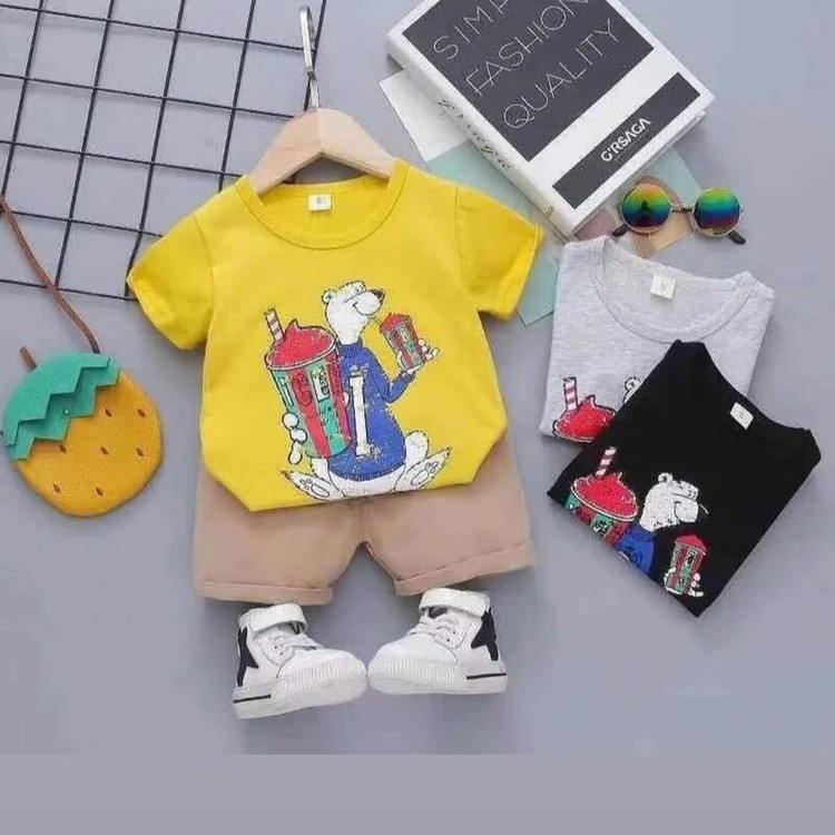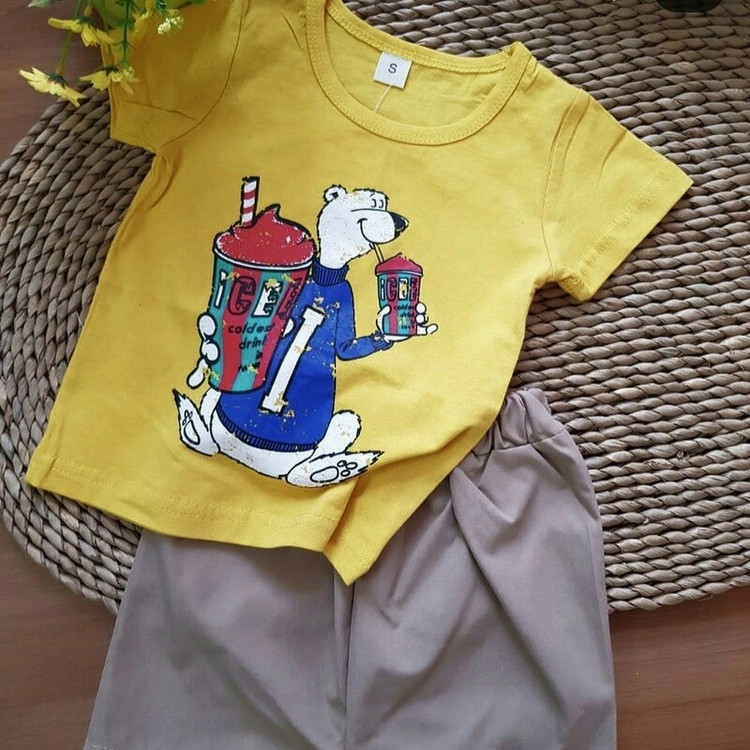 ست تیشرت و شلوارک وارداتی رنگ زرد مونده مناسب 8 ماه تا 18 ماه